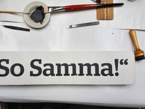 Gerne malen wir Schilder mit Schablonen, Lack, Lasuren und Dispersionen.