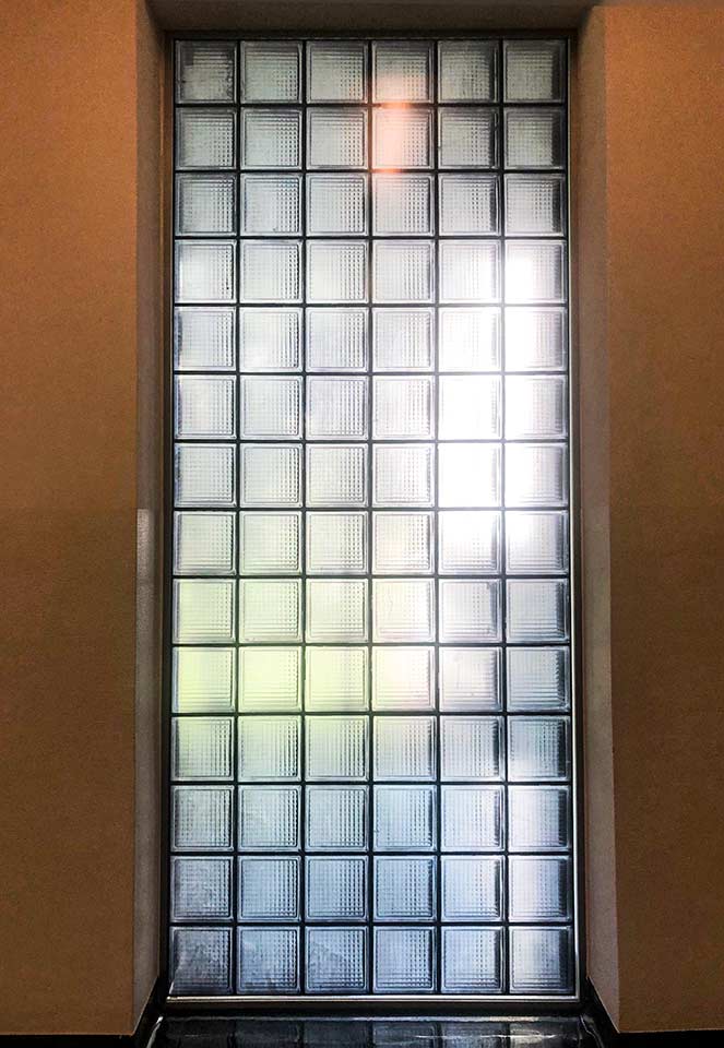 Transparente Folie um den Eindruck einer Glasziegelwand an einem normalen Fester zu erzeugen.