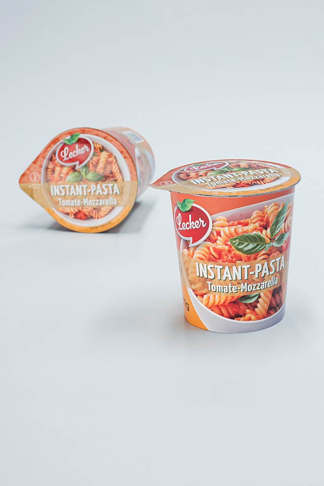 Etikettensatz selbstklebend: Papp-Banderole und PVC-Aufkleber für Aludeckel, passt auf: “Knorr – Pasta Pot Tomate Mozzarella”,